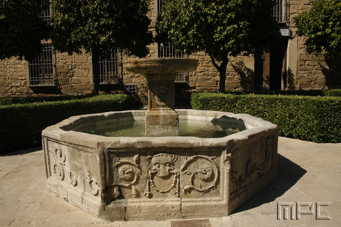 Se trata de una fuente del S. XVI, original de la casa-palacio de Don Francisco de los Cobos. Fue un regalo del senado veneciano al secretario del Emperador. El pilón tiene estructura octogonal, con decoración de grutescos en cada una de sus caras, y la pileta superior cuenta con minuciosos relieves de ranas, lagartos y serpientes de agua.