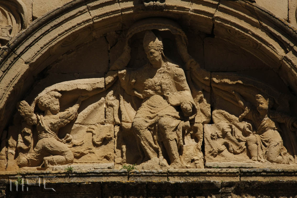 Ofrece aún un fuerte sabor plateresco y su programa iconográfico lógicamente es funerario: representación de orantes (padres del fundador) en su cuerpo ático, relieves de la tentación y la fortaleza en las enjutas, cráneos y demás motivos mortuorios. Su torre campanario fue el punto más alto de la ciudad hasta el S. XIX.