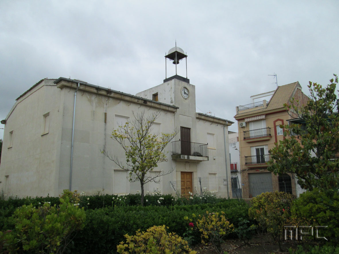 El edificio es de planta rectangular y consta de dos cuerpos. Se accede a través de una puerta adintelada, sobre ella un balcón y rematando el conjunto se eleva un cuerpo cuadrado que enmarca un reloj. Sobre él se asienta un templete de hierro forjado con una pequeña cúpula de la que pende una campana.