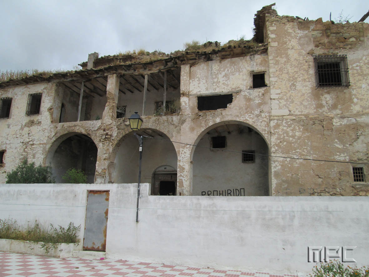 En la fachada principal destaca una galería de entrada de arcos de medio punto en su parte inferior y en su parte superior una galería adintelada. En un lateral se alza un torreón con tres vanos asimétricos.