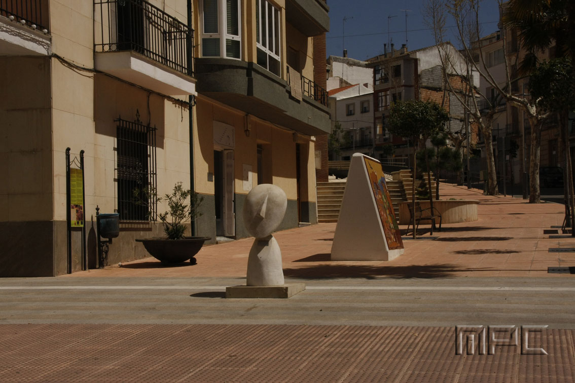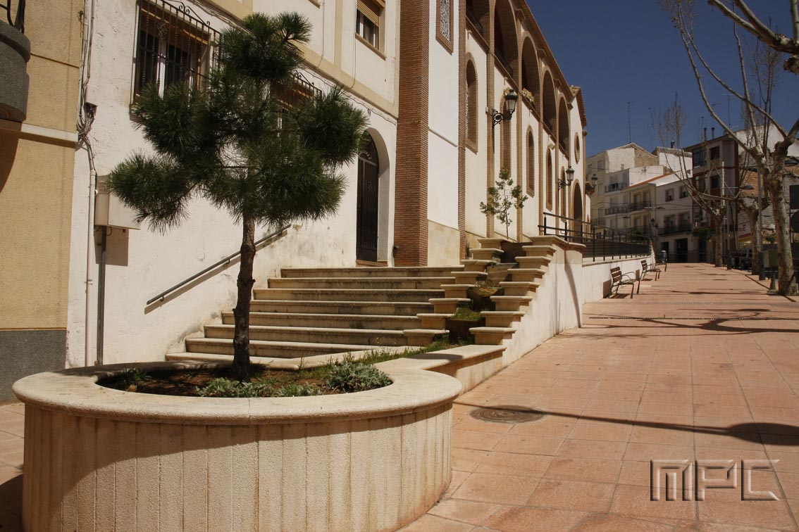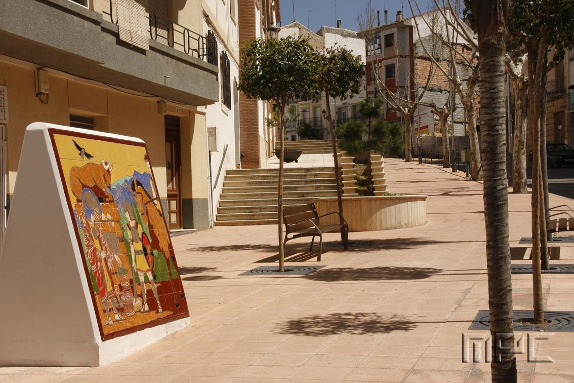 Plaza rectangular en la que se encuentran la fuente taza y el edificio consistorial.