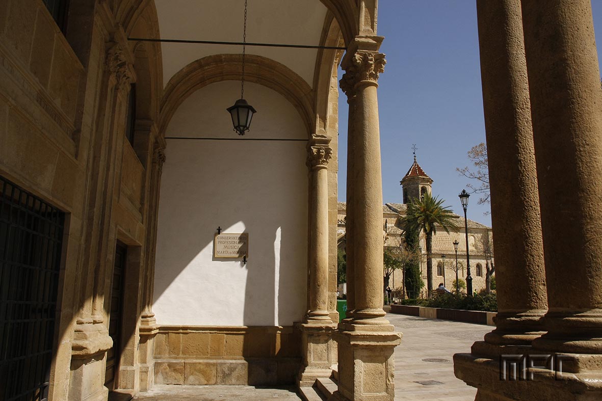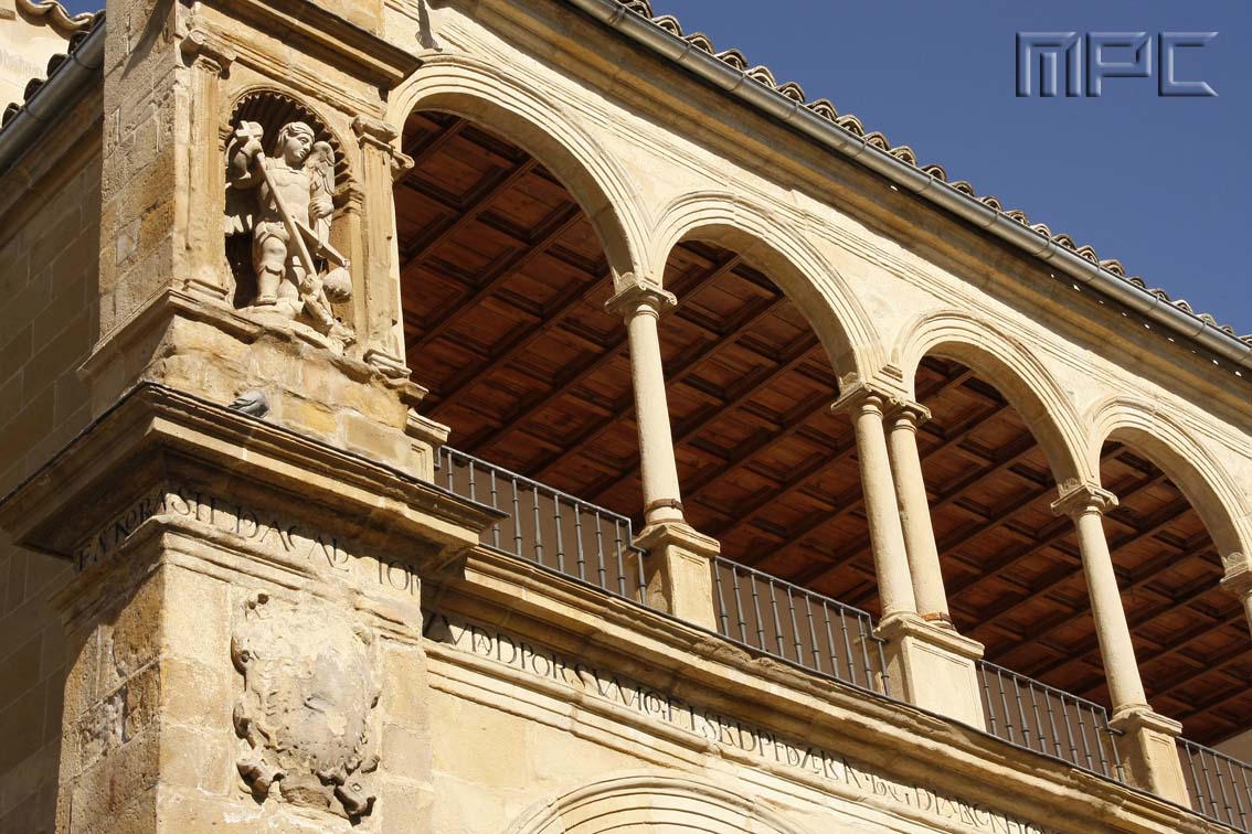 Se trata de un edificio de estilo Renacentista datado en el S. XVII. Fue la antigua sede del Ayuntamiento. Constituye un magnífico ejemplo de arquitectura civil de carácter público, que toma como modelo ejemplos del renacimiento italiano, con fachada de doble galería porticada. La superior tenía función de balcón, desde el que los miembros del cabildo asistían a las celebraciones desarrolladas en la plaza, mientras que la inferior servía como lugar de encuentros ciudadanos bajo cubierto. En los laterales están dispuestos dos contrafuertes, adornados por hornacinas en las que se encuentran el patrón y copatrón de la ciudad respectivamente, San Miguel Arcángel y San Juan de la Cruz.