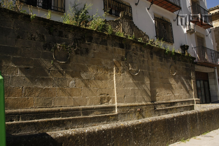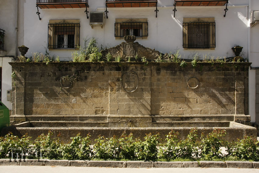 Fue una de las fuentes más importantes de la ciudad del XVII. En el XIX fue reformada para reconducir las cañerías de la casa de Vela de Almazán, de ahí que en la decoración de los tondos aparezca la fecha de 1882. En el muro principal aparecen dos grandes escudos, el de la ciudad y el escudo real. Su estilo es clasicista y está construida en piedra con pilar rectangular. En el siglo XX perdió su funcionalidad, convirtiéndose en un elemento ornamental del mobiliario urbano de la ciudad.