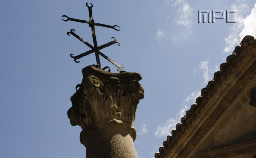 Situado en la parte trasera de la Iglesia de san Andrés encontramos una columna que sobre su capitel tiene un crismón de hierro. El crismón representa las letras griegas X y P, que son las dos primeras letras del nombre de Cristo en griego. Este símbolo se empleó en las monedas y estandartes romanos.