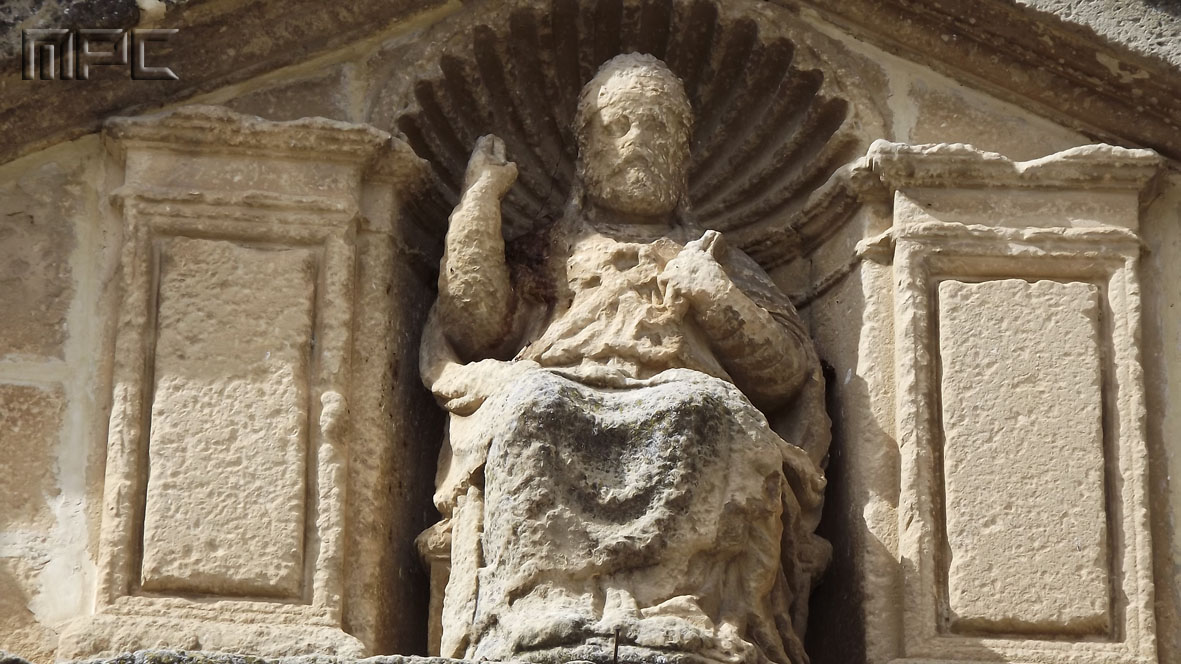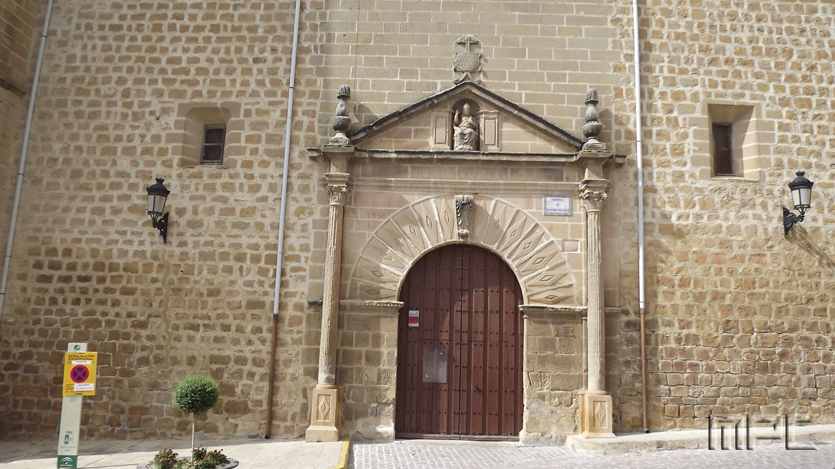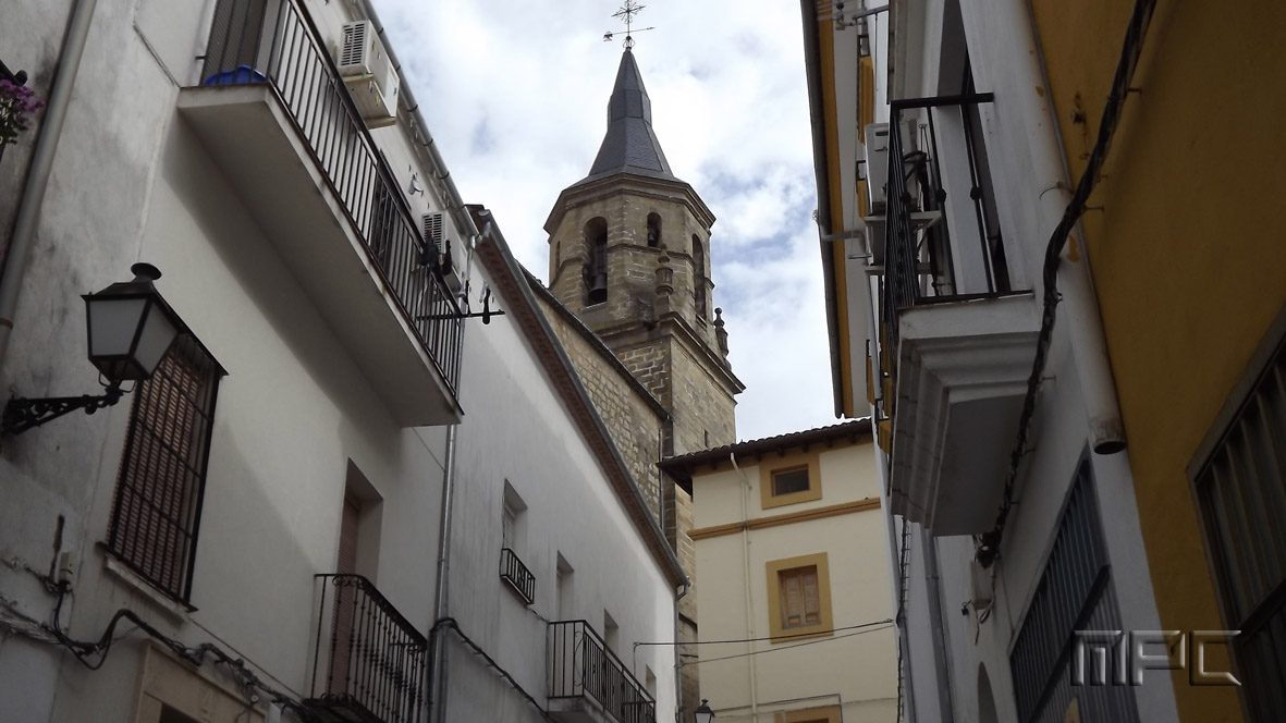 Este templo fue mandado edificar por Francisco Sarmiento de Mendoza, Obispo de Jaén en 1523, quien la realizó completa, incluyendo imágenes, retablos y campanas. Tiene una planta de una sola nave con siete capillas entre los contrafuertes sin comunicación entre ellas, que están vinculadas tradicionalmente a familias.
