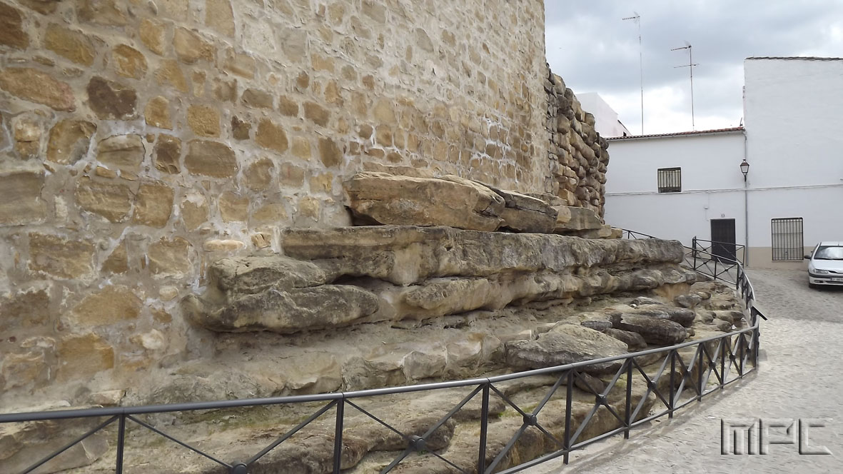 Se trata de los restos de una gran construcción, formada primitivamente por un recinto cuadrangular que rodeaba el perímetro del poblado del que hoy sólo conservamos una esquina de 12 y 13 metros de largo. Se construyó sin mortero aunque hoy se encuentran restauradas utilizando argamasa para la mejor conservación de la construcción.